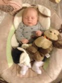 Napping with my friend Monkey in my new swing. Had a long day visiting my Mommy's work.